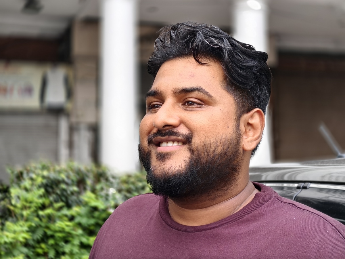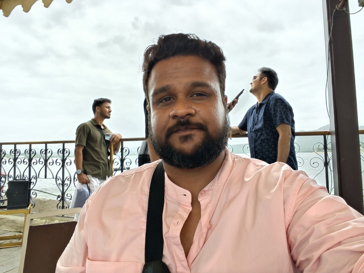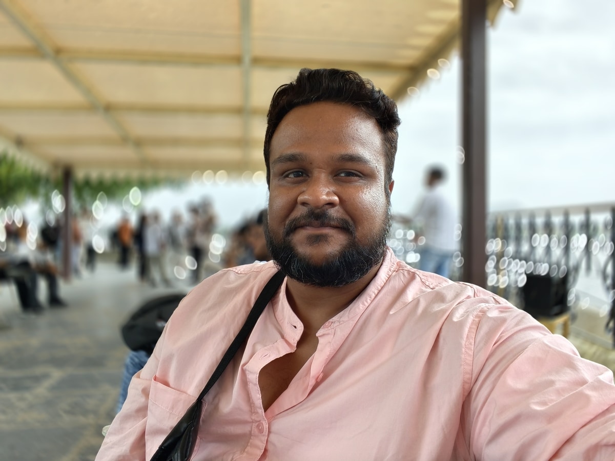 Селфи-камера (50 Мп) хорошо отрабатывает портреты: естественные оттенки кожи, хорошее отделение фона.